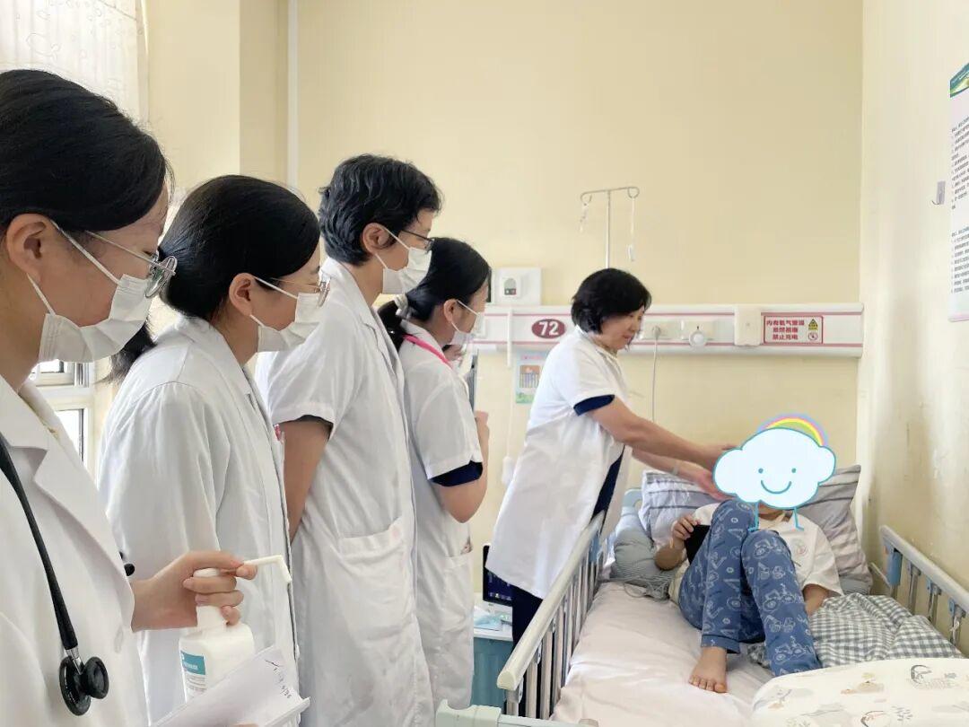 血液科主任梁卉团队查看患儿治疗恢复情况