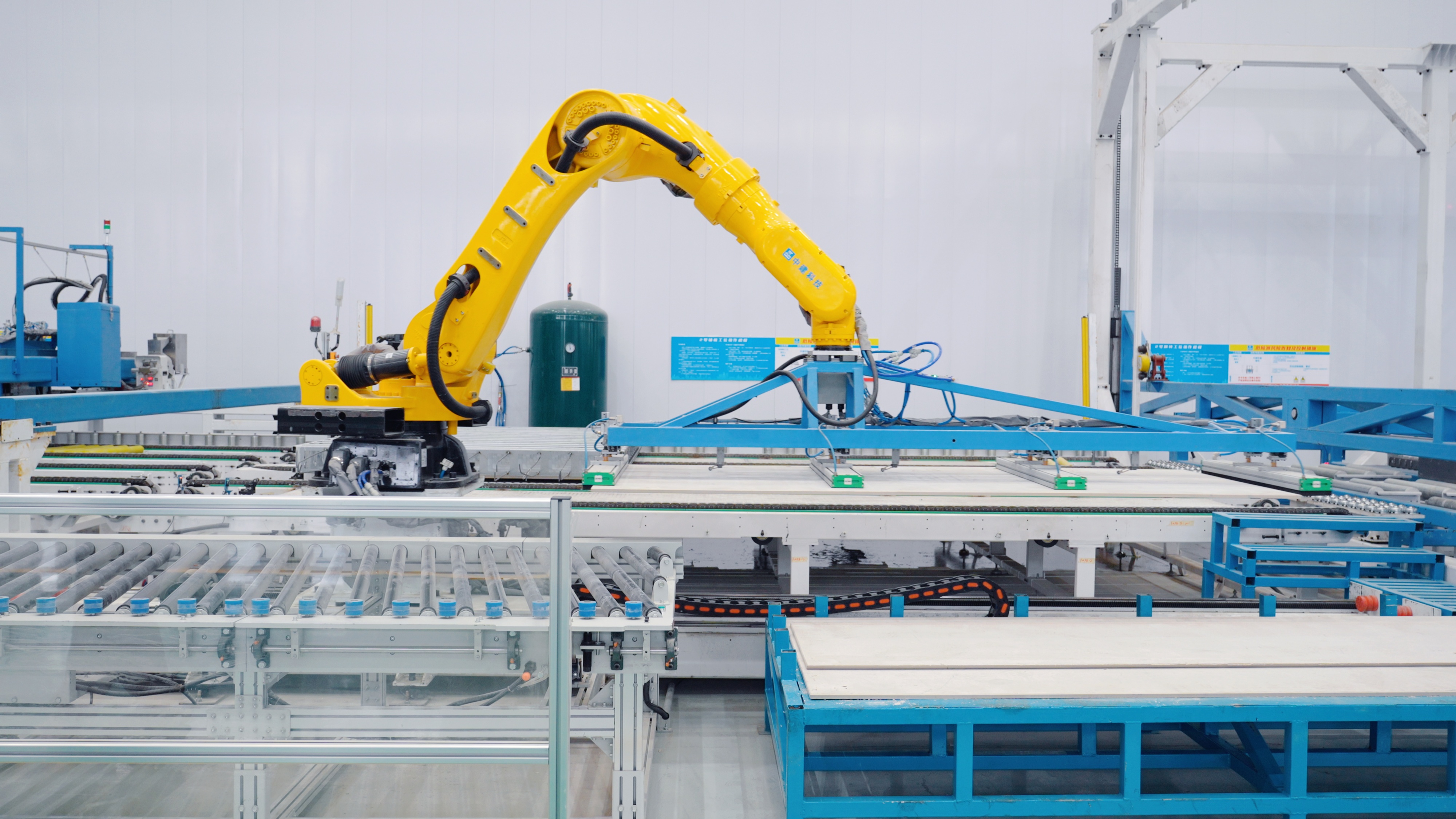 造房工厂里,工人正在给造房机器人发送指令,造房机器人在一条百米长的CMC智能生产线上高效流畅协同作业。仅需12分钟,即可制造完成一面墙板;仅需2小时,一间模块化房屋即可制造完成下线。樊则森介绍,CMC智能生产线是目前全国最先进、自动化程度最高的模块化建筑智能生产线,经院士专家评审达到国际领先水平。相较人工生产线,CMC智能生产线自动化比例提升至80%,制造精度提升至毫米级,生产效率提升4倍以上,良品率提升5倍。