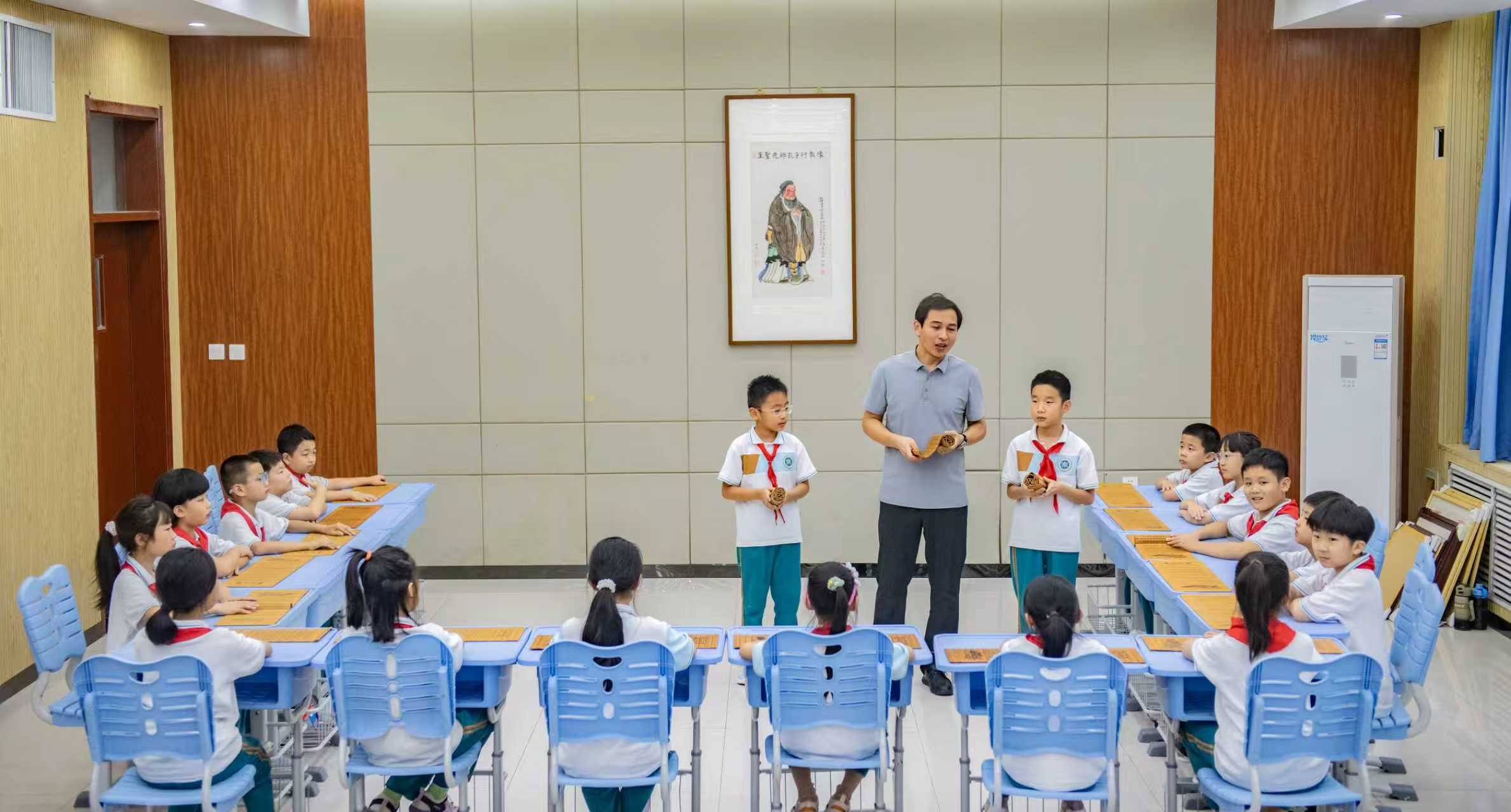 台下的孩子们立刻炸开了锅,有人举手分享自己“举一反三”的经历,有人追问孔子还有哪些有趣的教诲。武宁顺势拿出提前准备的卡通人物卡片,让孩子们扮演孔子和弟子,演绎“学而时习之”的场景。原本晦涩的经典语句,在故事与互动中变得鲜活可感。“以前觉得古文听不懂,现在知道孔子说的都是生活里的道理!”四年级学生李一诺拿着刚获得的 “经典小达人”贴纸,兴奋地说。这堂生动的传统文化课,正是孔子研究院从“关起门来做学问” 向“敞开门去弘儒学”转变的生动缩影。
