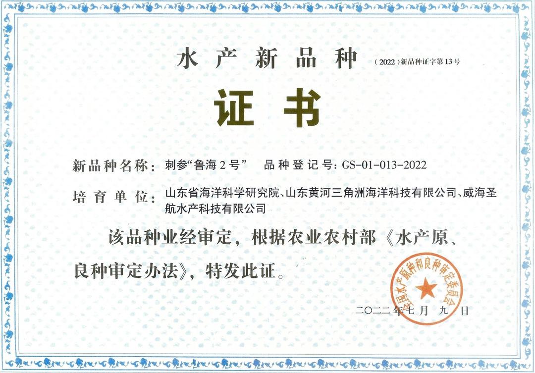 山东省现代农业刺参产业技术体系首席专家胡炜向记者介绍,刺参“鲁海2号”是以2006年从山东丁字湾自然海域采捕野生群体,并分别在烟台羊郡、东营河口经自繁后筛选出的460头刺参为基础群体,以体重和耐低盐为目标性状,采用群体选育技术,经连续4代选育而成。在盐度16—34的相同养殖条件下,与未经选育的刺参相比,24月龄体重和成活率分别提高22.5%和26.8%,适宜在我国刺参主养区水温2~30℃和盐度20~34的水体中养殖。2022年,刺参品种“鲁海2号”通过国家水产原种和良种审定委员会审定(品种登记号GS-01-013-2022)。