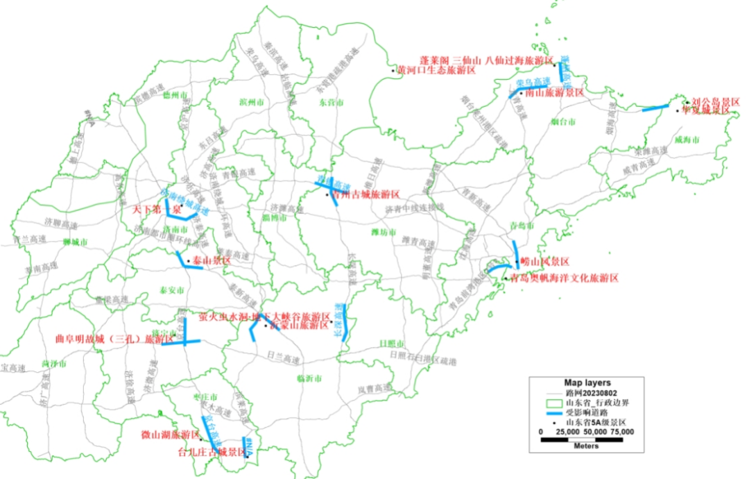 趵突泉、大明湖、泰山、台儿庄古城、曲阜孔庙等热门景点使得周边道路车流量增加,容易发生拥堵。