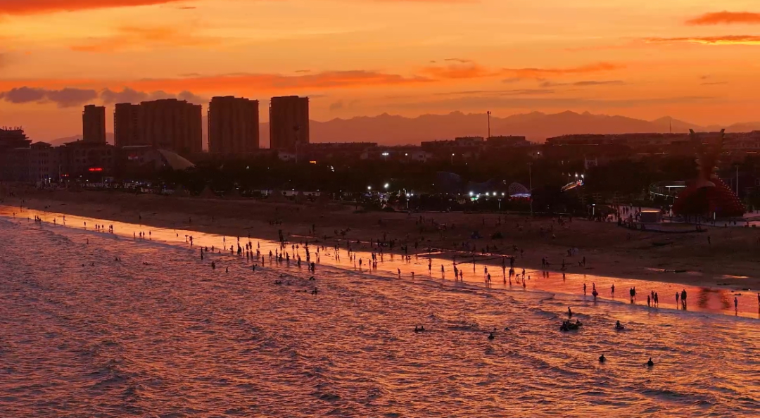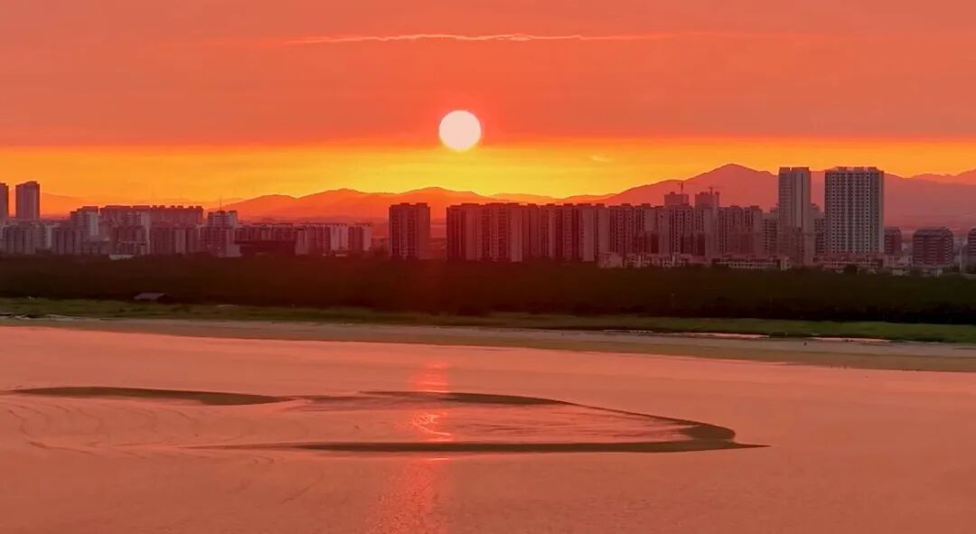 清晨到南海公园沙滩等日出,看第一缕金光刺破云层、太阳跃出海面,傍晚赏“橘子海”晚霞,粉紫与橘红的天空倒映海面,浪花裹着金光轻涌,让晚风载着浪漫漫过心头。
