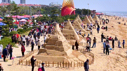 在沙雕文化艺术节,中外动漫文化碰撞交融,封神故事定格在金色沙海,可以和栩栩如生的沙雕合影,也可以亲子共绘沙画,把时光磨成细沙般的温柔。