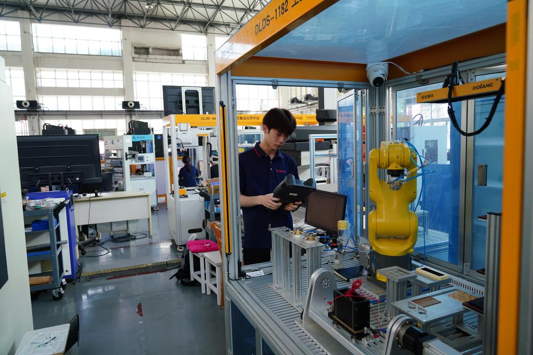学院的21个专业与淄博市“四强”产业高度契合,产业匹配度高达64%,毕业生留淄率达到80%,在全市高校中居首位。随着淄博将机器人产业作为培育新质生产力的重要方向,学院迅速开设工业机器人应用技术专业,首批65名学生已在机械臂与自动化程序的操作中找到属于自己的未来赛道。