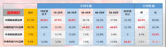 《报告》显示,从年龄结构来看,36-65岁的人群更偏好中国传统汽车品牌;25岁以下的人群,选择中国新势力品牌的比例远超于其他类型品牌。从性别差异看,中国新势力品牌和传统品牌更受男性群体的青睐;女性群体对外资品牌的选择领先男性。