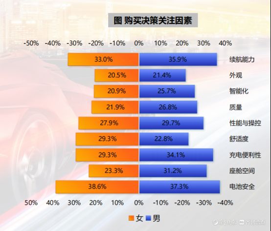 但是在购买之前,消费者的选择愈发理性,在外观、舒适度之外,更多的消费者开始关注其他因素。《报告》显示,购买决策关注因素中,电池安全、续航能力、充电便利性、性能与操控、座舱空间等都受到受访者重视。