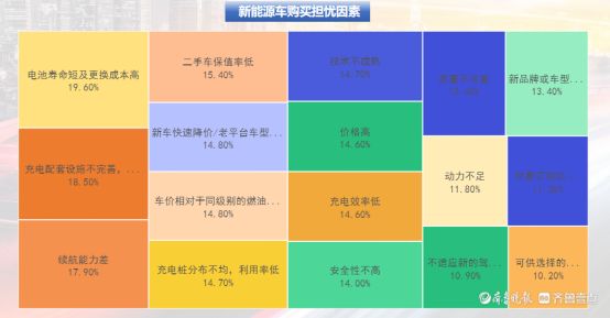与此同时,仍有部分消费者对新能源汽车存有疑虑。部分受访者表示,担心购买新能源汽车会出现电池寿命短及更换成本高、充电设施配套不完善、续航能力差、二手车保值率低、新车快速降价、安全性不高、充电效率低、动力不足等问题。