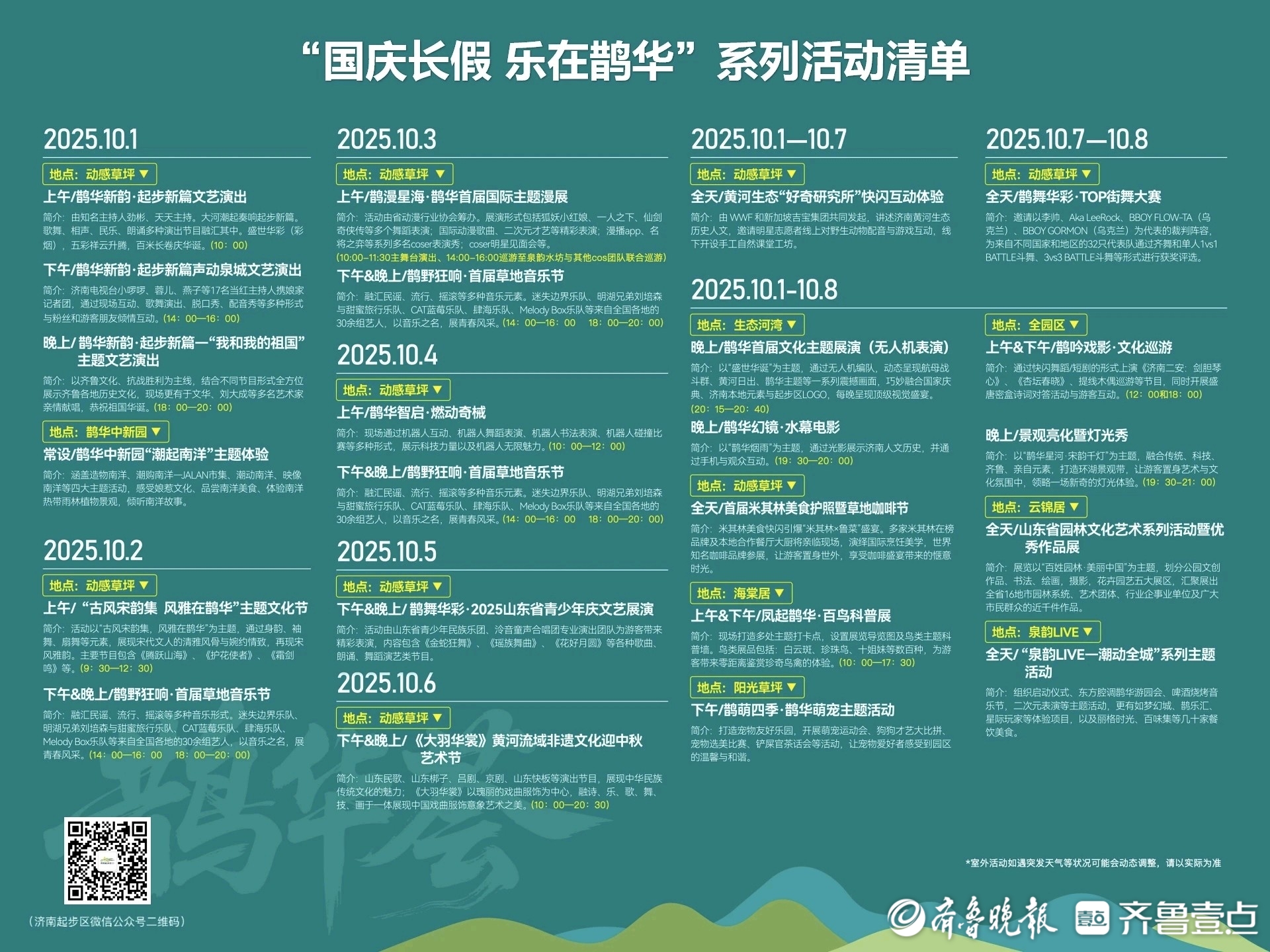 作为全市“泉在济南享金秋”系列活动的重要组成部分,国庆长假期间,济南起步区鹊山生态文化区(一期)将上演23场精彩活动。为方便大家出行,起步区提前谋划建设停车场等设施,并联合相关部门调整优化园区周边交通组织路线。