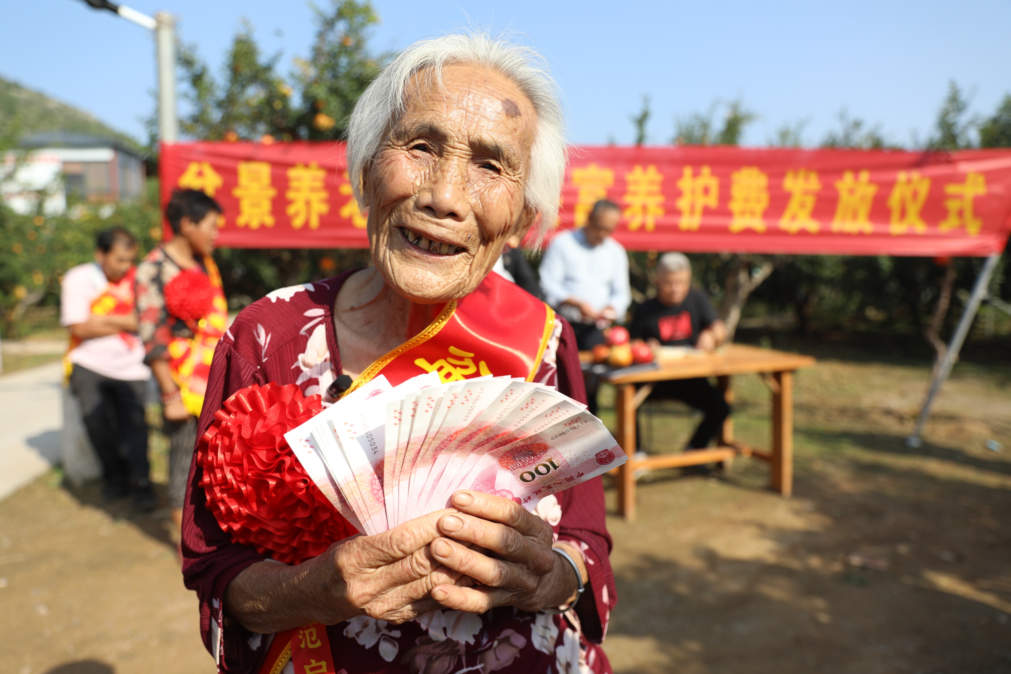 当天,朱村10户老人共领到24800元养护费。红包在布满老茧的手中传递,像一颗颗成熟的石榴籽,把“家门口挣钱”的甜意种进了老人心里。