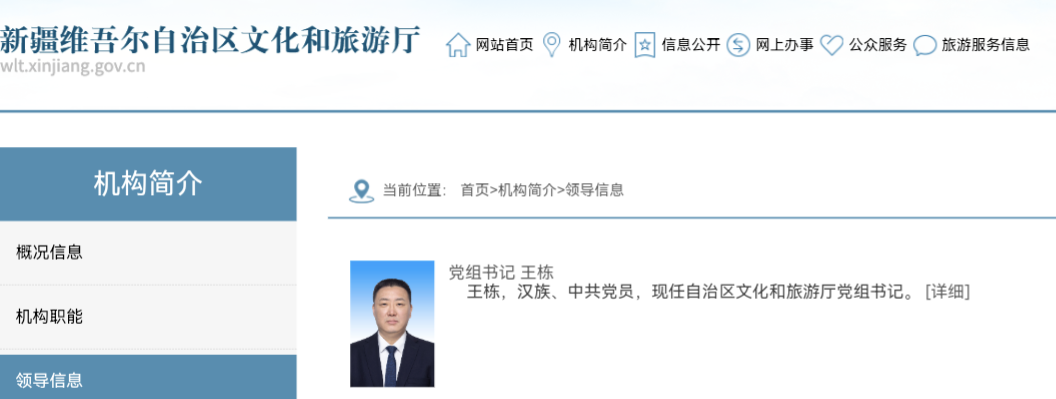 近日,新疆维吾尔自治区文化和旅游厅网站更新领导信息,王栋已任自治区文化和旅游厅党组书记。