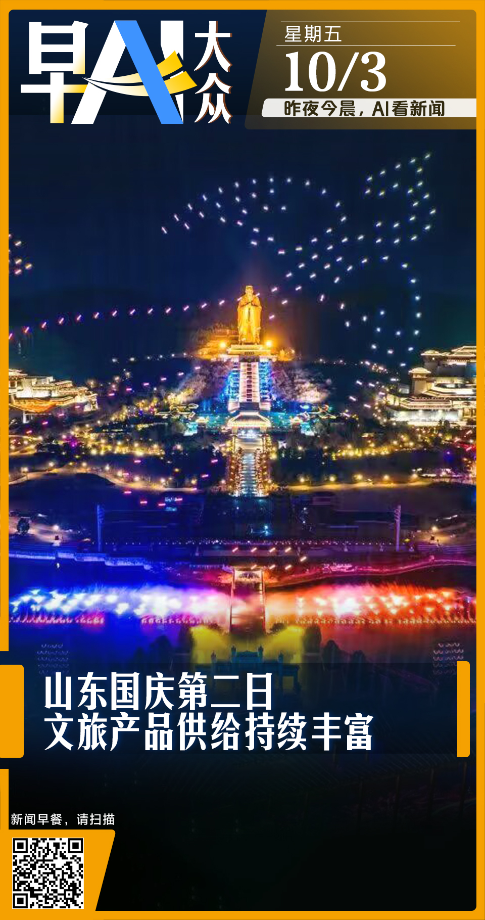 早AI大众|山东200家景区接待游客327.1万人次;王楚钦孙颖莎今晚冲击混双冠军