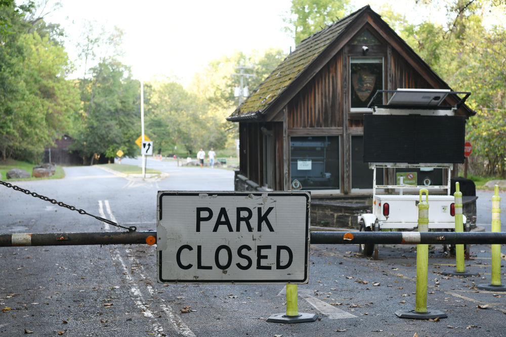 10月3日,在美国弗吉尼亚州费尔法克斯,受联邦政府“停摆”影响,通往大瀑布公园游客中心的道路关闭。新华社记者李睿摄
