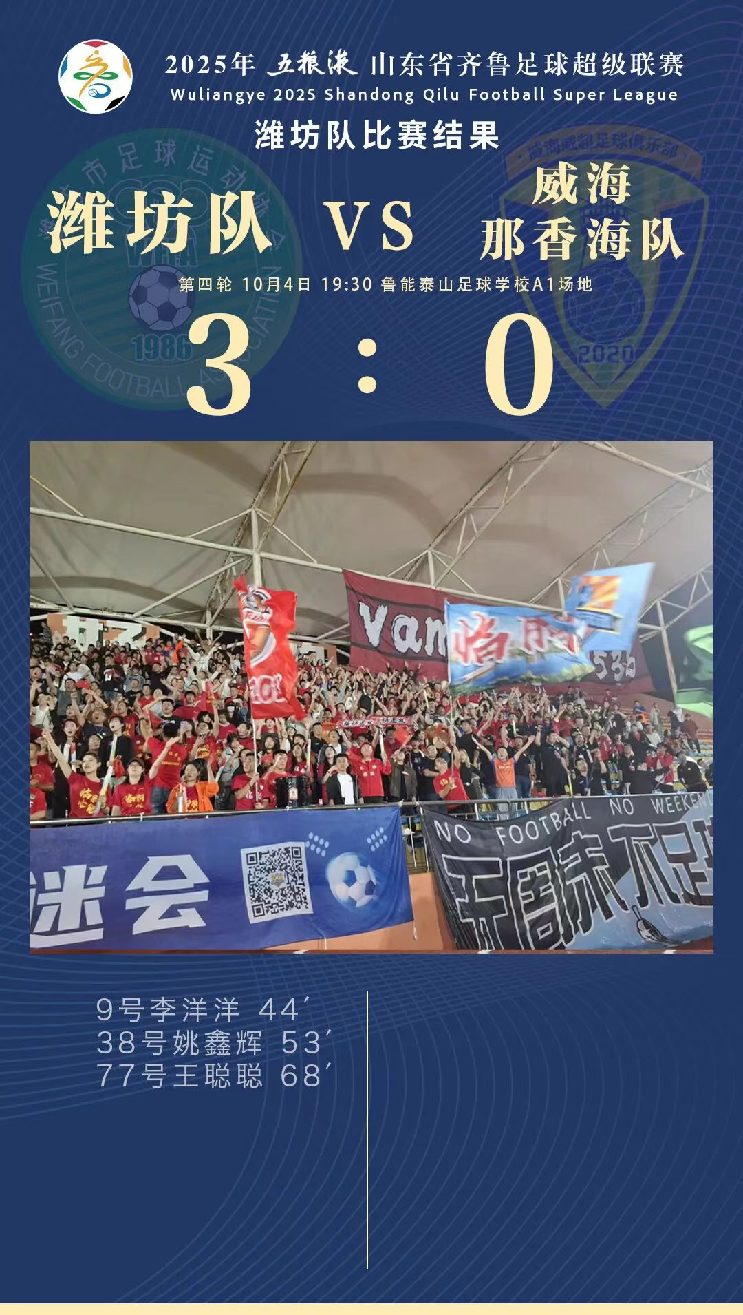 齐鲁超赛第四轮丨潍坊队主场3∶0完胜威海那香海队