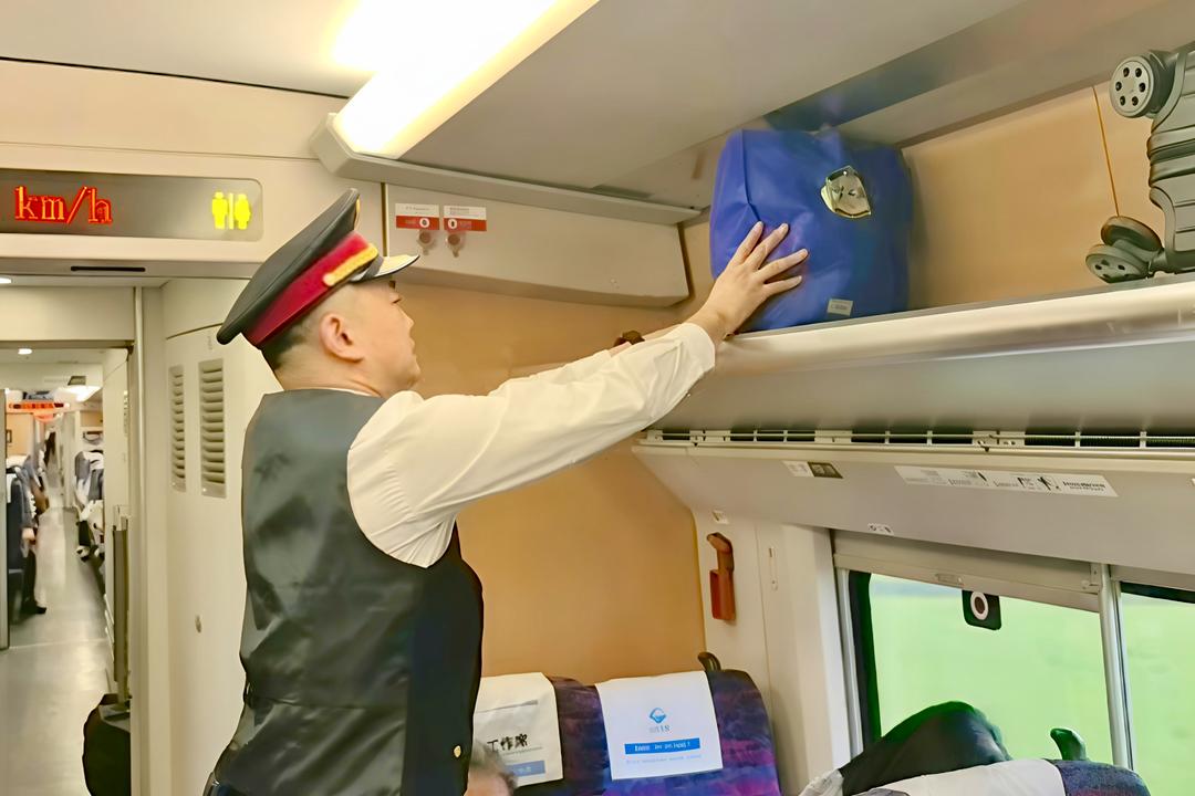 “请大家按顺序上车,大件行李请放在指定位置。”刘岩的声音沉稳有力。放客、引导、巡视、帮扶……每个环节他都一丝不苟。车厢里,一个行李箱倾斜放置,他立即上前扶正;一位老年旅客神情疲惫,他主动递上热水。这些细微之处的关注,源自他多年的军旅生涯养成。