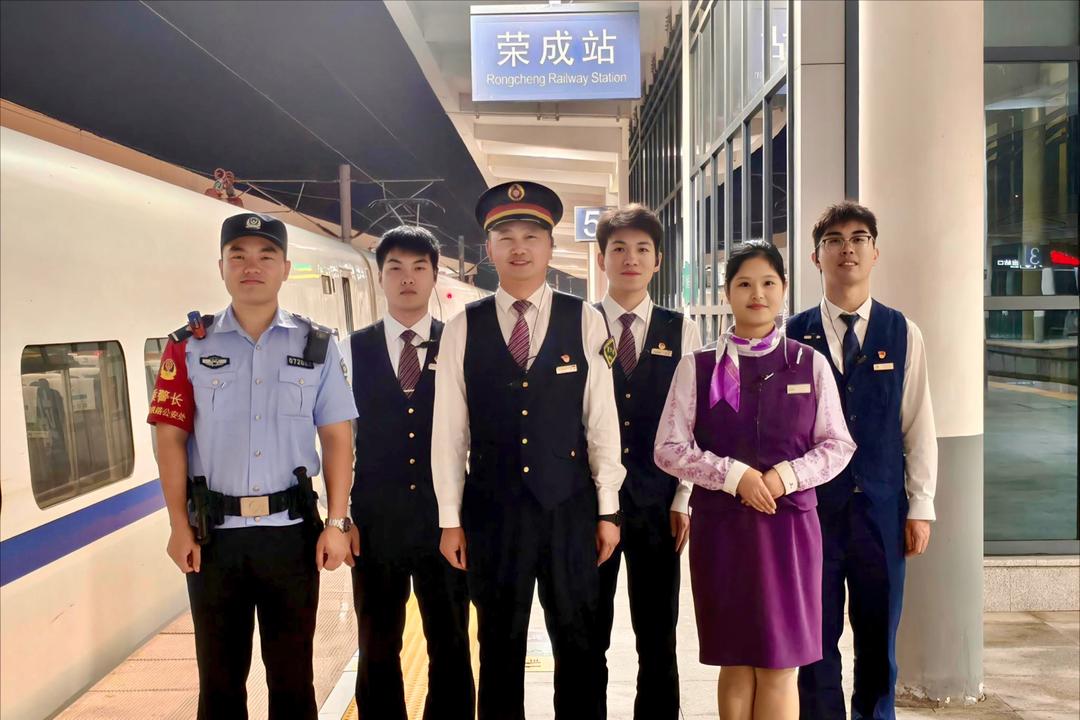 2017年,凭借踏实肯干的工作态度,刘岩晋升为列车长。这些年来,他值乘过慢悠悠的绿皮车,也服务过风驰电掣的“复兴号”。“从慢到快,我亲眼见证了中国铁路的飞速发展,这何尝不是国家日益强大的缩影?”