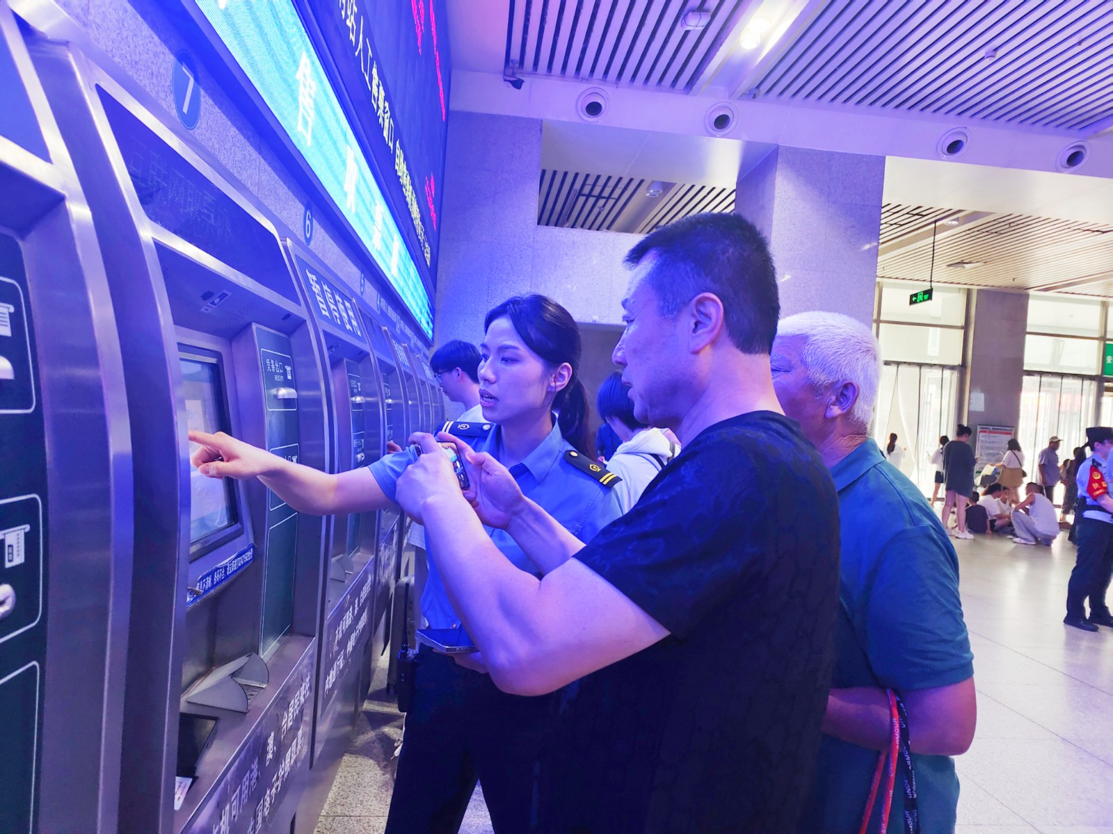 “仅便捷换乘这一项方案,就至少召开过两三次专题会议研讨调整。”曾亚珍说。现在,北换乘通道闸机数量达到5个,换乘量占总量的9成,为旅客提供了更便捷的换乘体验。此外,售票厅打破传统的“玻璃隔阂”,改为全开放式,具备问询及退改售综合服务功能,售票台高度按照成人舒适操作标准设计,还嵌入对外显示屏幕,旅客可实时看到售票员的操作,让服务更显温度。