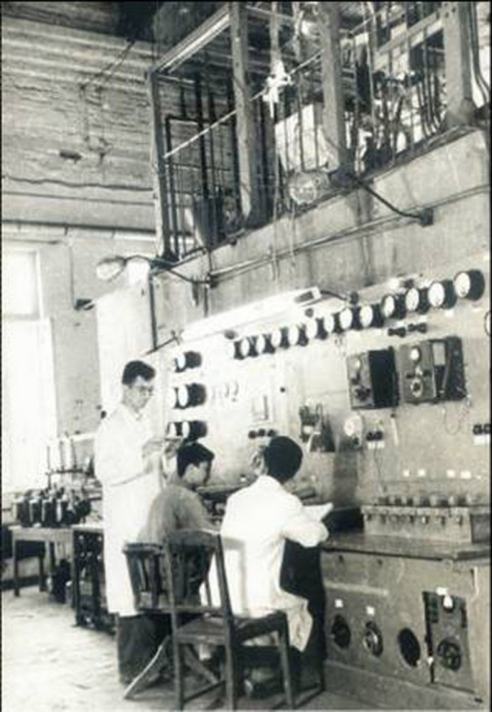 20世纪50年代初,张存浩(左一)在实验室进行水煤气合成液体燃料实验。(新华社发)