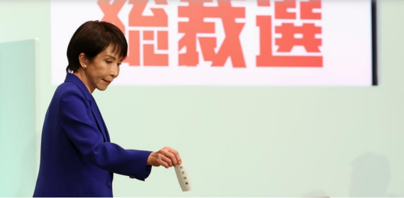 (10月4日,高市早苗在日本东京自民党总部进行的自民党总裁选举中投票。新华社发)