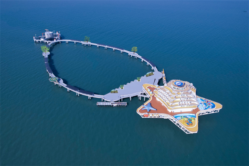 登上这座现代化的“海上度假村”,科技感扑面而来。这座有7层楼高的综合体平台外围直径达120米,面积有1万平方米。游客们可以在展厅探索深海的奥秘,也可以到休闲海钓区尽享垂钓的乐趣,实现360度沉浸式旅游体验。