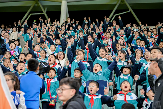 为了让孩子们充分感受足球的魅力,体会校园里无法感受的真实赛场,2024年4月28日,学校还组织1285名师生及家长观看中乙联赛,为家乡球队“日照宇启足球队”加油助威,该规模创下中国职业足球“小学生现场观赛人数”纪录,孩子们热情的助威和整齐响亮的口号,给赛场内所有人留下了深刻的印象。