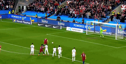 第19分钟,挪威还是打破僵局:鲍勃右路直传,索尔洛特下底传中,努萨后点头球攻门,击中哈莱利的身体折射入网,1-0!