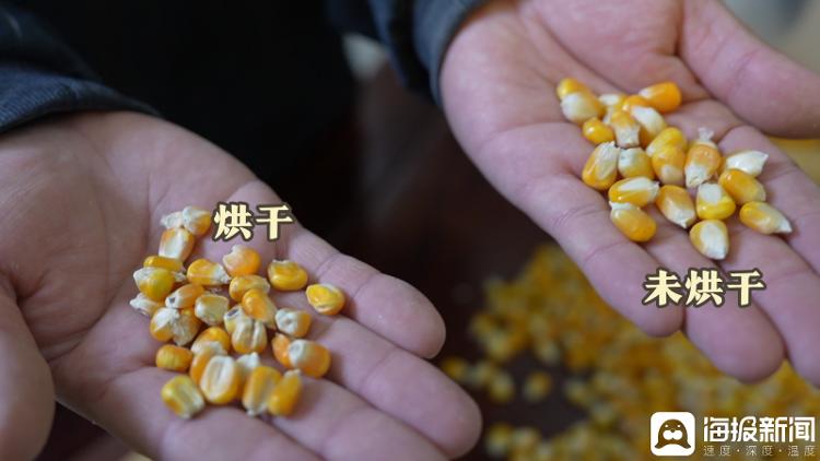 “我们来检测对比一下。”王安文用谷物水分测量仪操作,测量出结果,接着用双手展示烘干前后的两种玉米颗粒。“我左手里是含水量29.6%左右的玉米,右手里是14.1%左右的。肉眼看,没有烘干的玉米粒水汪汪的,烘干后的有点干瘪,但是已完成脱水,拉到仓储间,放到明年应该都没事。”