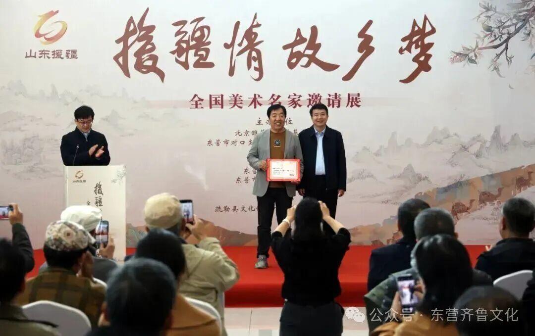 10月11日,由北京雏菊花公益基金会与东营援疆工作指挥部联合主办,东营市齐鲁文化促进会、东营市美术家协会协办,新疆鲁新文化旅游发展有限责任公司承办的 “援疆情・故乡梦” 全国美术名家邀请展,在新疆疏勒县正式拉开帷幕。来自北京、山东等地的老援疆干部、知名画家代表,疏勒县宣传文化领域和民族团结模范个人,乡镇、村(社区)干部代表100多人参加活动。