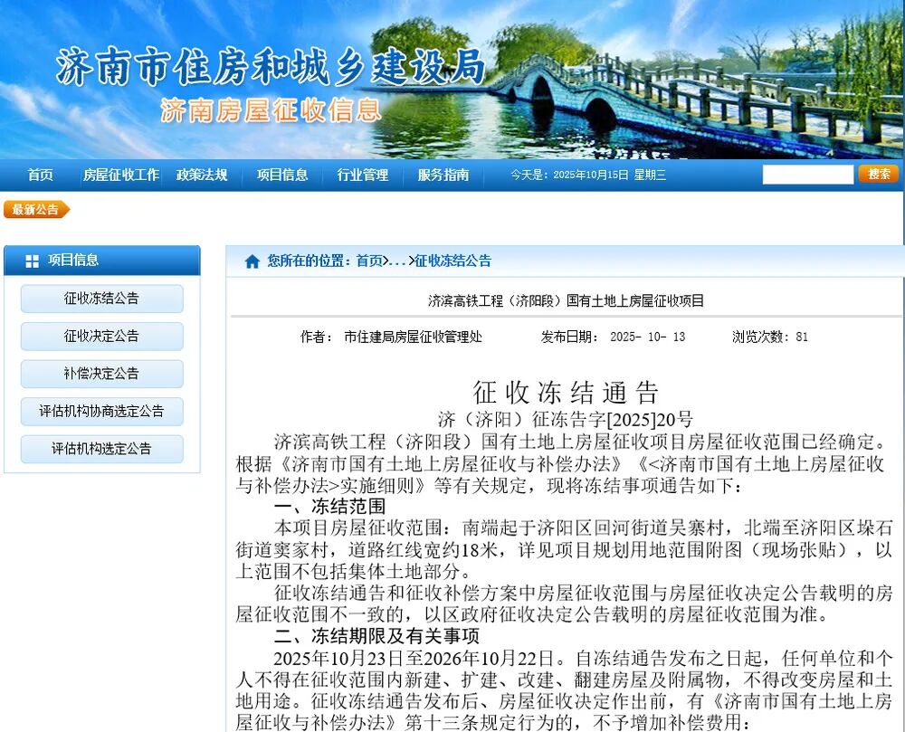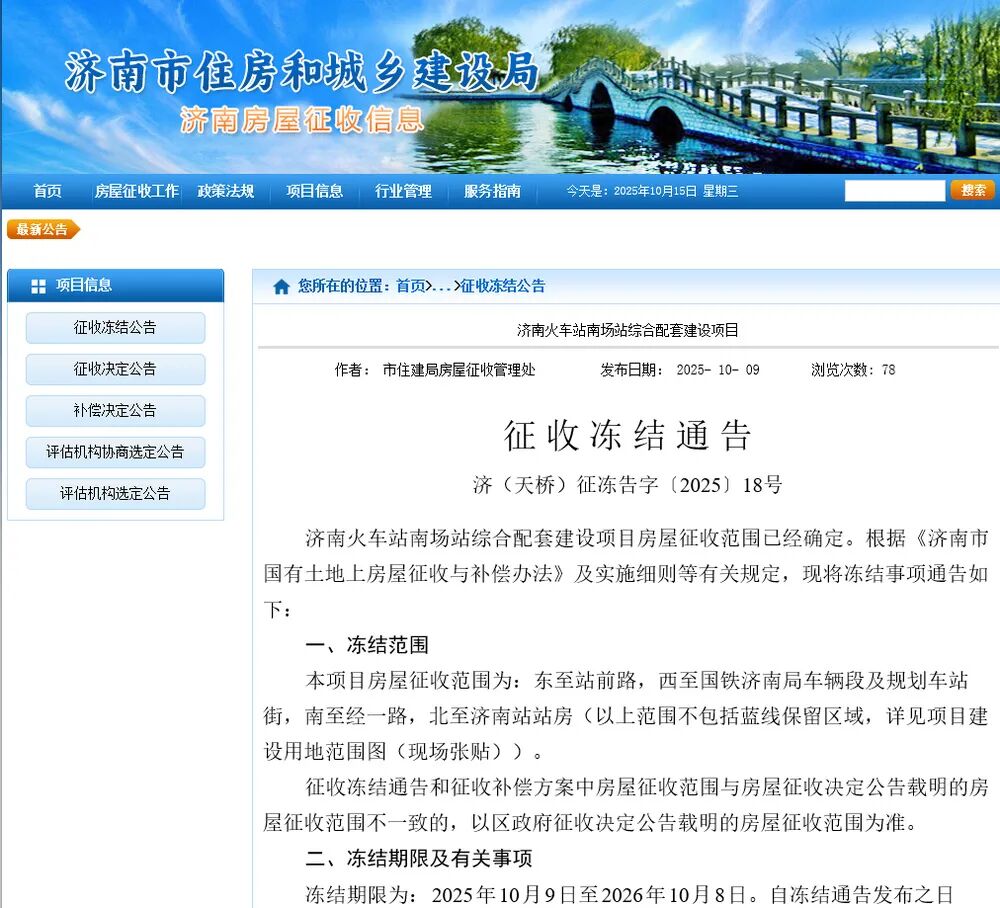 济南发布最新征收冻结通告,具体范围来了