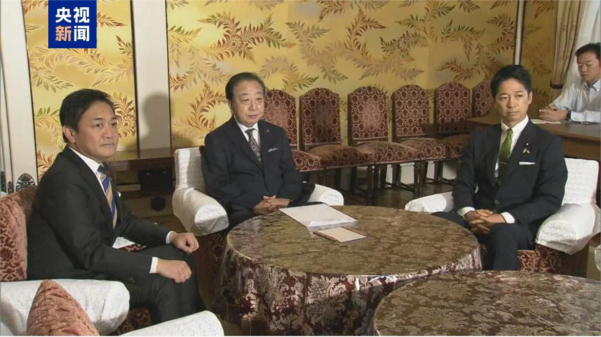 10月15日下午,日本三大在野党立宪民主党、维新会、国民民主党党首举行会谈。图源:央视新闻