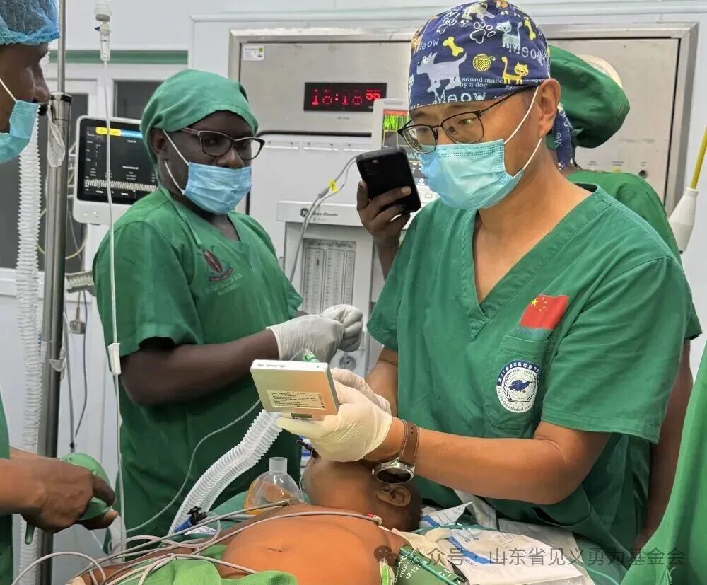张军桥在坦桑尼亚国立医院的手术台上工作