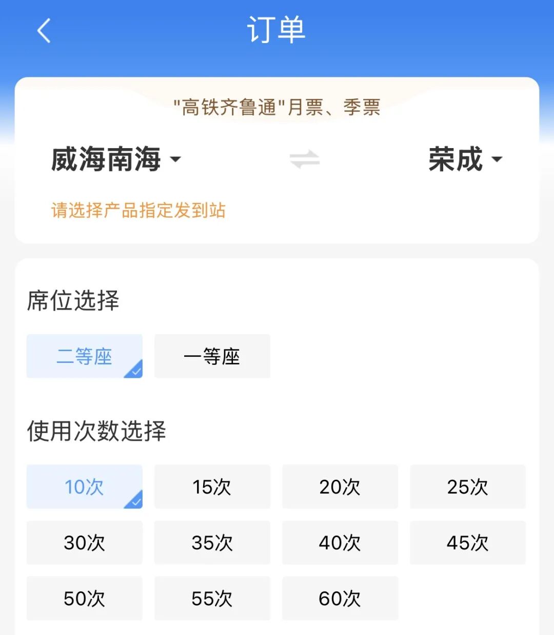 “高铁齐鲁通”月票、季票产品