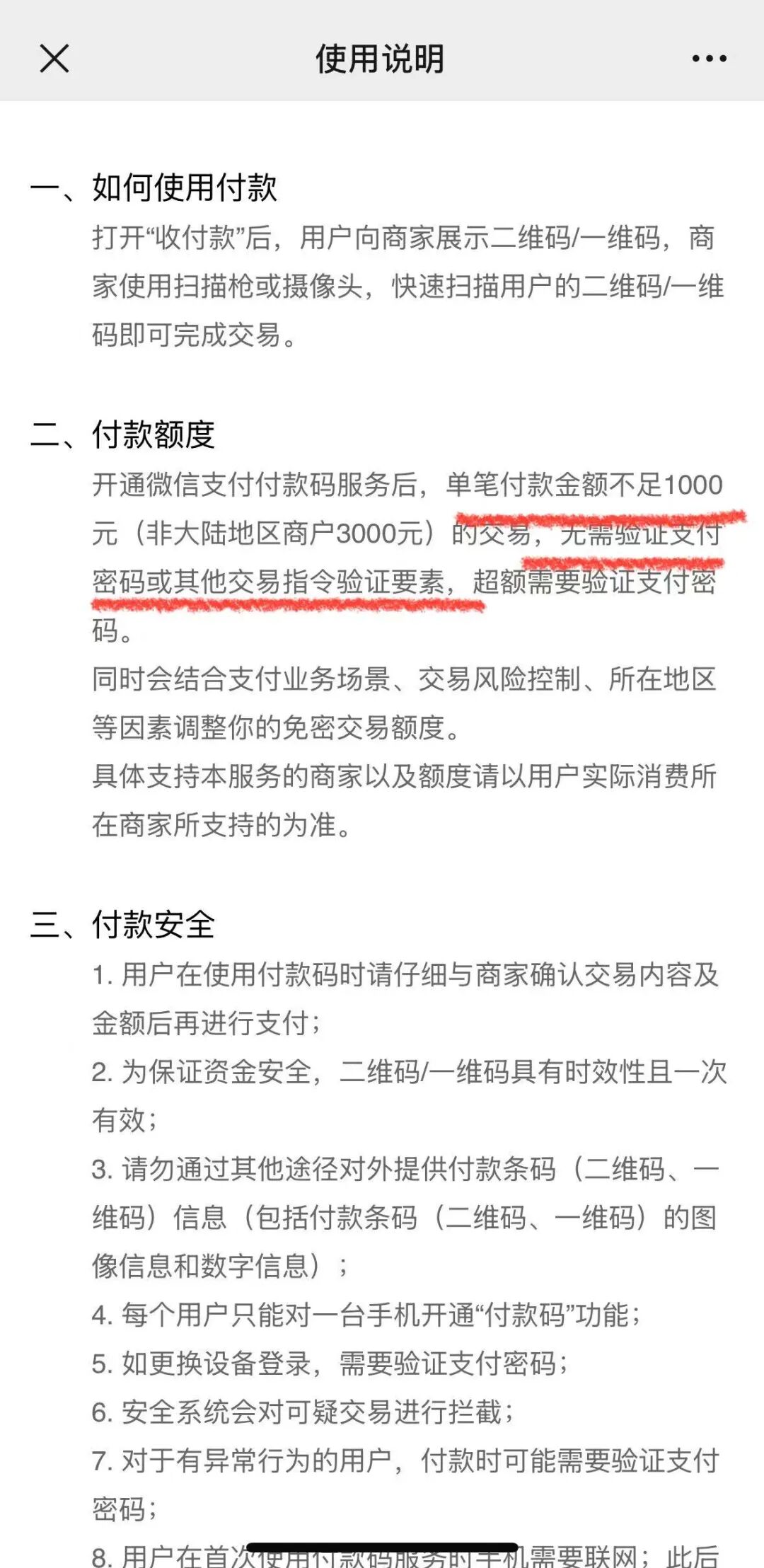 微信支付付款码使用说明界面截图
