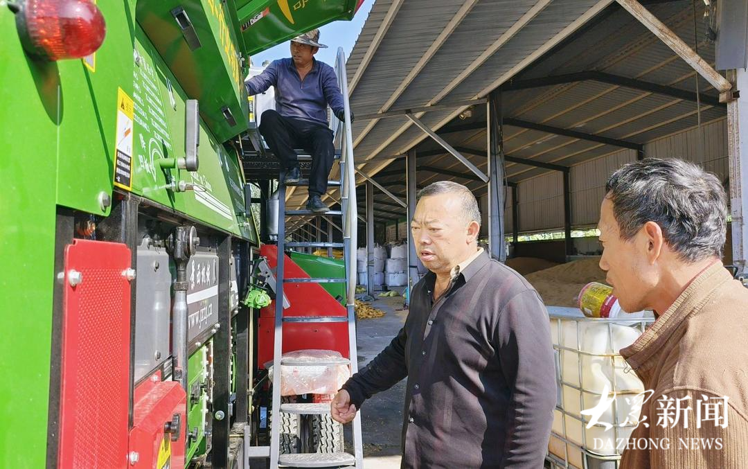 10月14日这天,持续多日的阴雨终于暂停。德汇农场院子里,停了不少新设备,比如脱粒机。而且,有一台还是上午刚刚送过来的。张有国告诉农村大众记者,这是新上的第二台脱粒机,铲车也增加了,都是围绕烘干塔购置的。