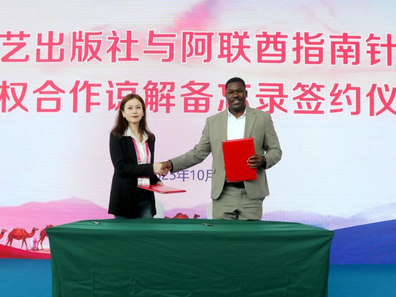 随后,太白文艺出版社与指南针出版社签署了版权合作谅解备忘录,双方希望就优秀作品的翻译出版达成长期合作。两家出版社将以此次签约为起点,持续深化合作内容,拓展合作领域,共同推动中外文化交流,促进文明对话,携手为“一带一路”倡议下的出版合作贡献力量。