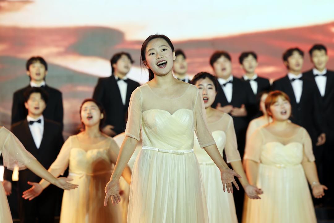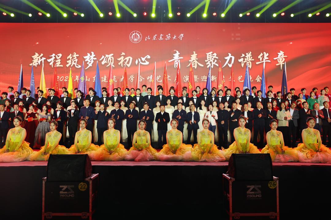 晚会上,山东建筑大学各个院系合唱团演唱《爱我中华》《在灿烂阳光下》《保卫黄河》《领航》《筑梦》等主旋律歌曲,还有融合武术、书法、舞蹈等元素的《少年中国说》等情景式合唱节目,赢得掌声与合呼。晚会结尾,全场师生共同高唱《歌唱祖国》,表达爱国之情,为新生鼓劲加油。