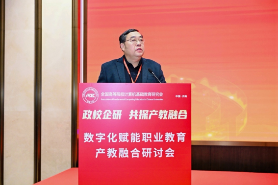 金秋济南,硕果盈枝。10月17日至18日,“数字化赋能职业教育产教融合研讨会” 在山东济南清照酒店召开。本次会议由全国高等院校计算机基础教育研究会高职计算机与电商专委会主办,山东省职业教育和产业人才研究院作为指导单位,山东电子职业技术学院承办。以 “政校企研共探产教融合” 为核心主题,深度契合教育强国建设与数字化转型战略需求。汇聚工信部、教育部领导、加拿大工程院院士等全国各地职业院校领导、教育专家、行业企业代表及一线教育工作者共计160余人,通过政策解读、主旨报告、圆桌研讨、实地观摩等多元形式,破解产教融合痛点难题,擘画数字化背景下职业教育高质量发展新蓝图。