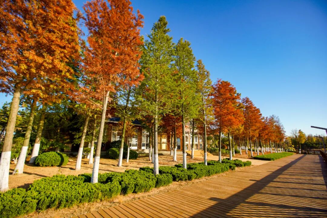 秋天的香水河公园,因为植被的丰富多彩,造就了秋景的五彩斑斓。这里的色调以红、黄、绿为主,搭配出了惊艳的色彩。整个河畔五彩缤纷、流光溢彩、层林尽染,犹如颜料瓶打翻在这里。居民可趁着晴好天气,在“五彩画卷”中,感受属于南海新区的秋日温柔。