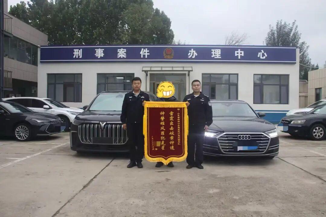 10月17日,租赁公司负责人特意带着一面印有“雷霆出击破案神速 神警雄风罪犯克星”字样的锦旗送到办案民警手中,对民警破案挽损表示肯定。