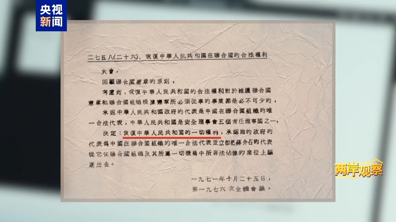 1971年10月25日的联合国大会会场,响起热烈持久掌声。亚非拉国家代表起立欢呼,时任中华人民共和国代表团团长乔冠华放声大笑,定格下重要历史时刻。就在这天,以联合国名义确认一个中国原则的第2758号决议高票通过,决议规定“决定恢复中华人民共和国的一切权利,承认中华人民共和国政府的代表为中国在联合国组织的唯一合法代表并立即把蒋介石的代表从它在联合国组织及其所属一切机构中所非法占据的席位上驱逐出去”,而且明确了中国在联合国的席位只有一个,不存在“两个中国”“一中一台”的问题。