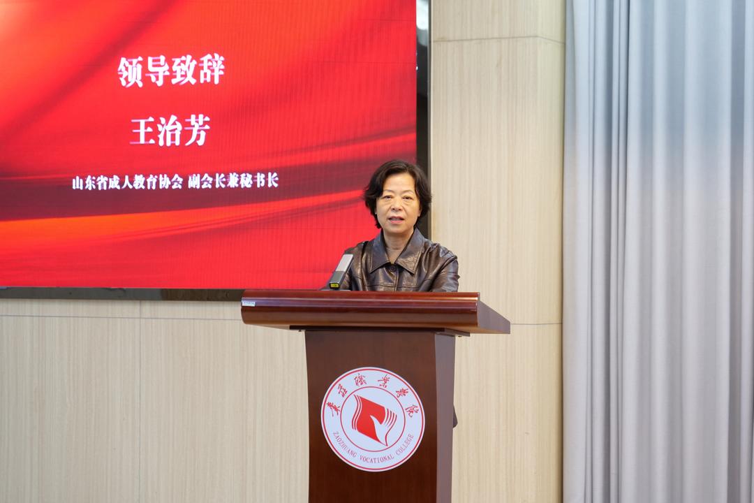 王治芳代表山东成人教育协会致辞,她指出,枣庄协会的成立,是贯彻“建设全民终身学习的学习型社会、学习型大国”战略部署的具体实践,标志着全省成人继续教育组织网络进一步完善,为全省成人继续教育的高质量发展注入新的动力。她强调,枣庄协会要坚持正确的方向,在市教育局领导下整合优质资源,围绕全市成人继续教育发展的中心任务,凝聚行业共识,强化服务意识,注重创新实效,以务实作风推进各项工作。