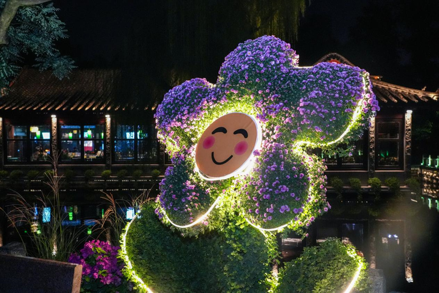 为丰富游览时段,提升夜间游览体验,本届菊展结合《趵突夜画》夜游项目,对多处菊花造景进行了专业的灯光设计。结合菊花景观的形态、色彩和质感,进行精准布光,让市民游客充分领略夜色下的菊展风情。夜色降临,华灯初上,白日里端庄秀雅的菊花小景在光影勾勒下平添几分神秘与浪漫;菊花造型则更显立体生动,色彩愈发饱满艳丽。