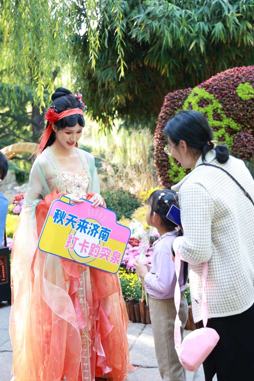 菊展期间,天下第一泉风景区精心打造菊花仙子古风巡游、“济南二安”对诗互动、金秋菊展摄影大赛、护城河游船赏菊专线、望鹤亭茶社“诗酒茶花”茶道花艺展演等配套活动,并在趵突泉、五龙潭、大明湖、环城公园分别推出菊展主题市集,汇聚非遗手作、菊花美食、互动游戏等多元内容,带来沉浸式的金秋赏菊文化盛宴。