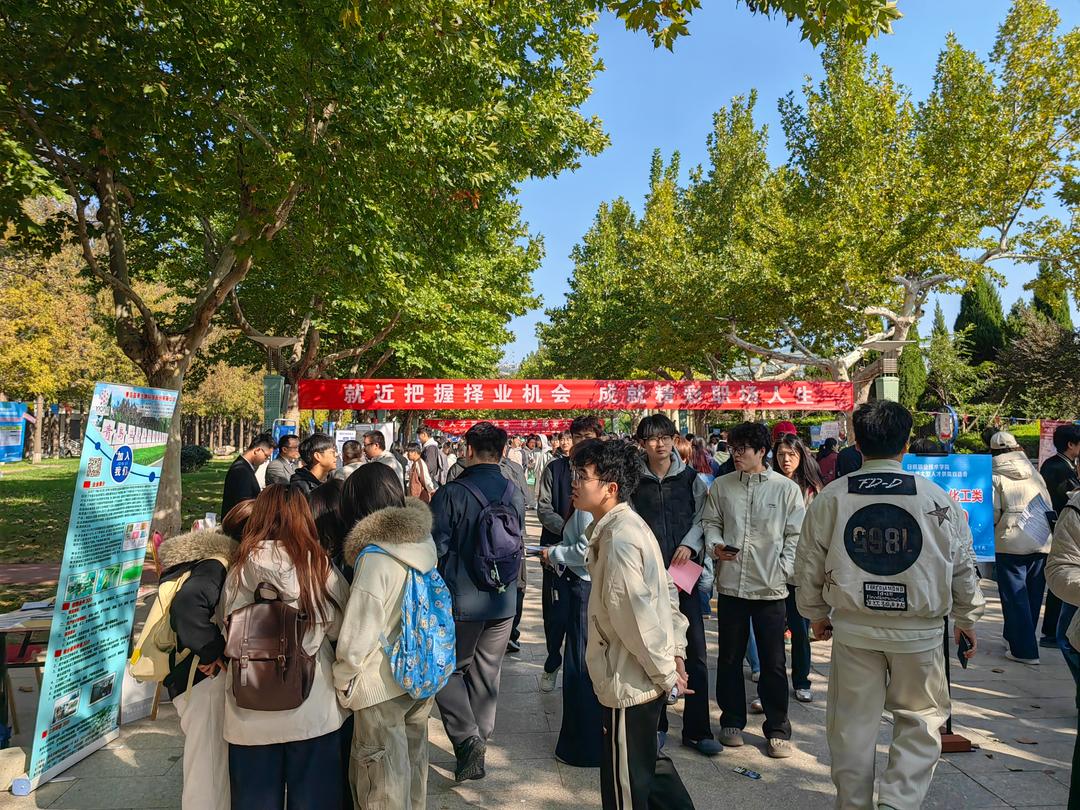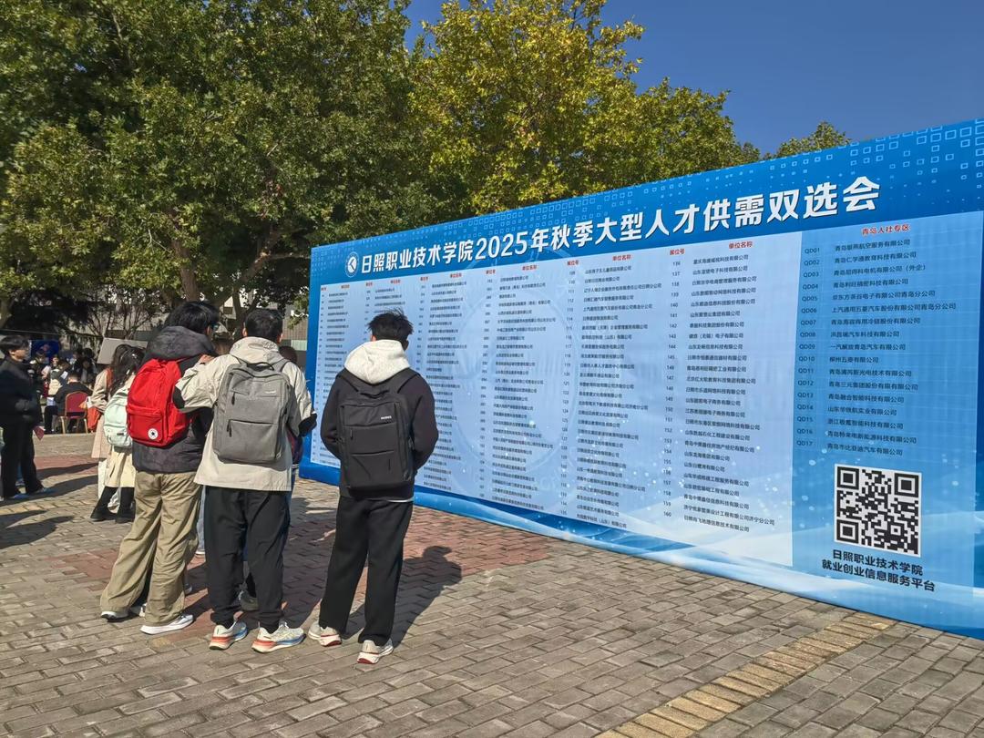 10月23日,日照职业技术学院校园至中路的法桐树下,人潮涌动间满是求职与招贤的热烈气息。招聘展架沿道排开,学生们攥着简历穿梭其间,企业HR的岗位介绍声、学生们的热切问询与讨论声交织——该校2025年秋季大型人才供需双选会在此举行。