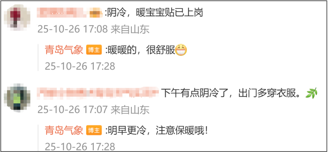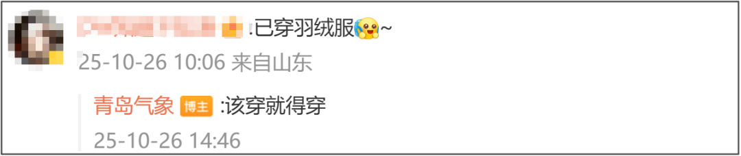有网友表示“已穿上羽绒服”“暖宝宝已上岗”