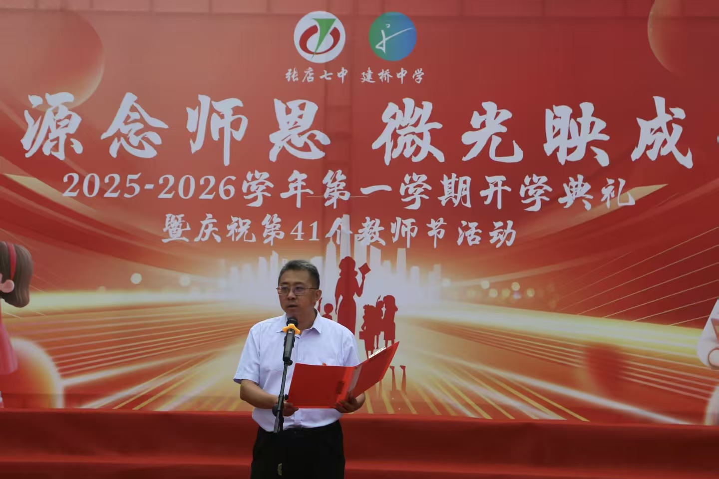 2025年9月8日清晨,张店七中操场上彩旗飘扬,书声琅琅。在“溯源念师恩 微光映成长”主题开学典礼上,张店七中教育集团党总支书记刘斌深情致辞:“以奋斗之姿启新程,秉师恩之光向未来。”他勉励全体师生胸怀梦想、勤奋学习、团结协作、勇于担当,“让自己也成为一束光源,照亮社会前进之路。”