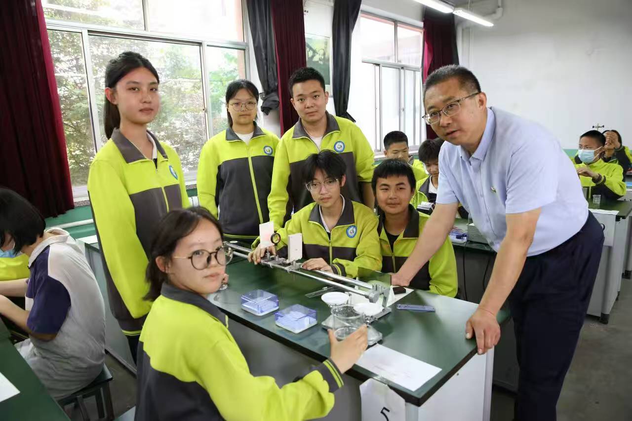 刘斌走进课堂,指导学生实验。