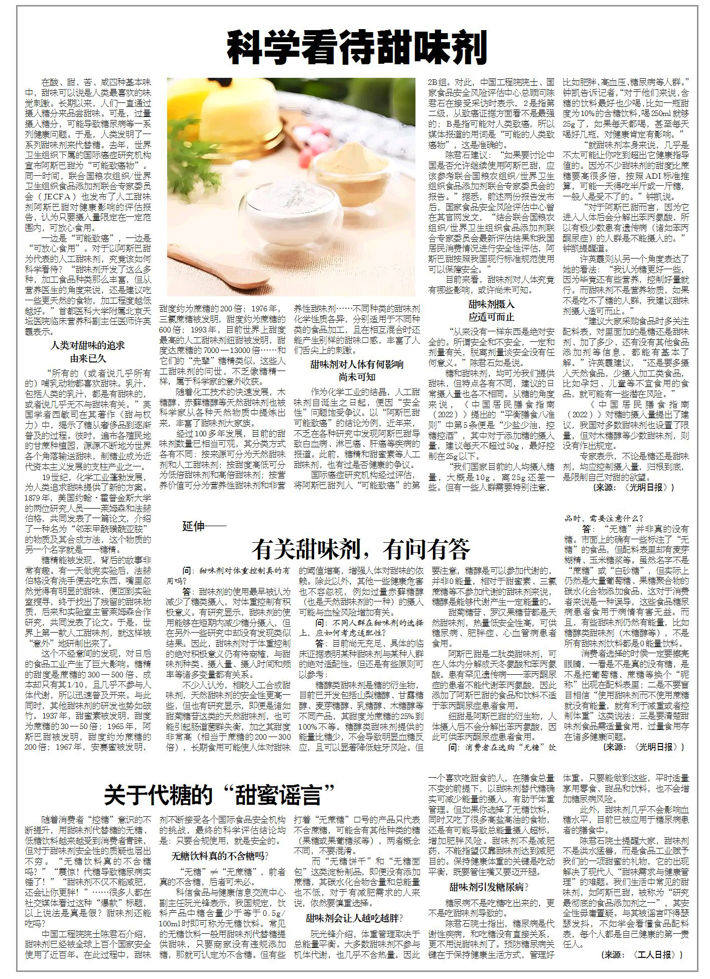 《中国居民膳食指南(2022)》对糖的摄入量提出了建议,我国对多数甜味剂也设置了限量,但对木糖醇等少数甜味剂,则没有作出规定。