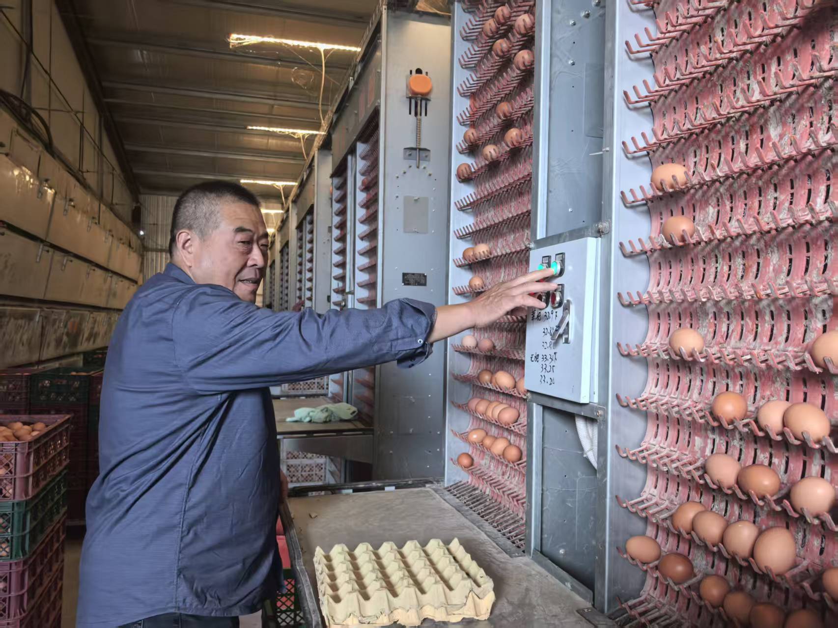 董广银深耕蛋鸡养殖三十余年,此前投资千万元建成四座全自动化养殖车间,5名工人即可照料7.6万羽存栏蛋鸡,自动化设备让养殖效率大幅提升。可今年秋收季的连绵秋雨让他犯了难:“鸡饲料里的玉米一发霉,养殖成本就涨了。我想建个玉米粮仓扩大存储量,可资金一直没着落。”