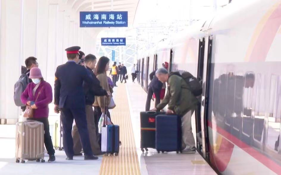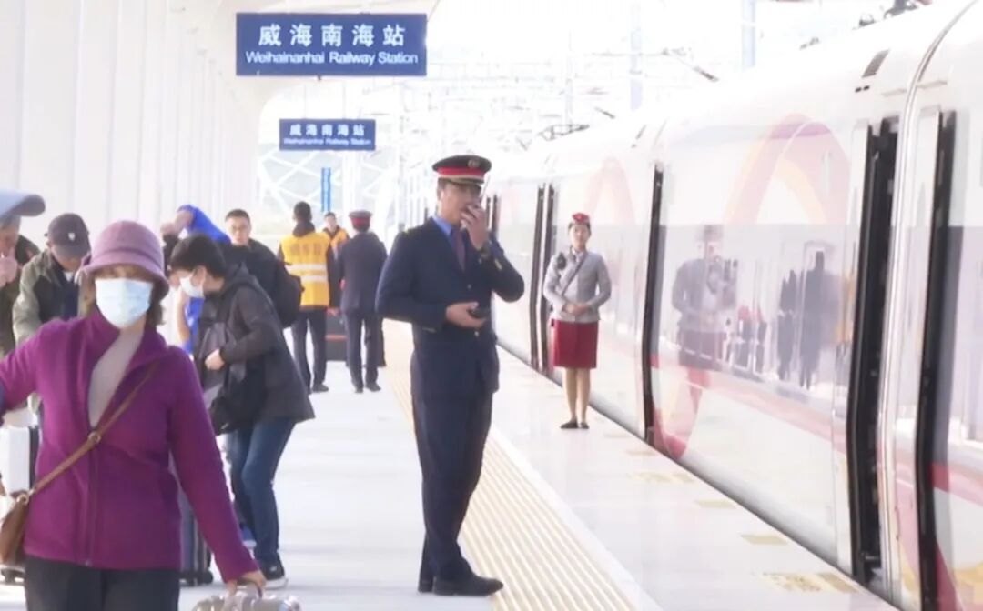 当日上午,威海南海高铁站旅客往来井然有序。居民周瑞文难掩兴奋:“以前得先去威海站转车,现在在家门口就能坐直达高铁,省了不少时间,太方便了。”在发往北京南的G1090次列车检票口,常往返两地的孟凡辉同样感慨:“对我们旅居南海的北京人来说太方便了,以前只能到威海站,现在北京与南海高铁直达,再坐几分钟车就到家,朋友来南海玩也省事,特别好。”
