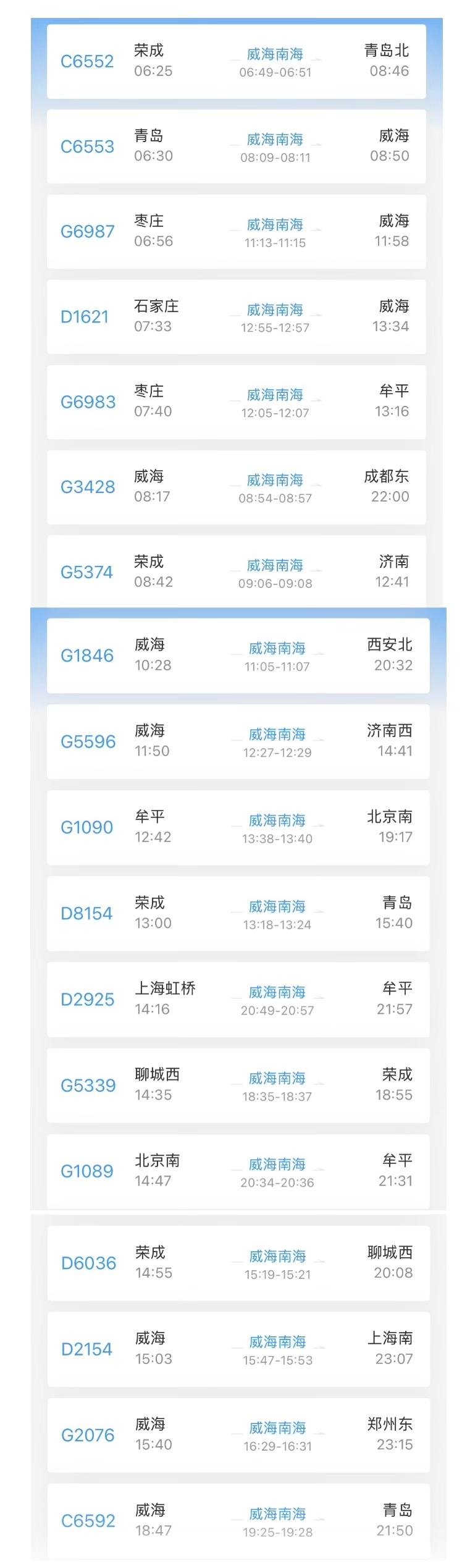 此次调图后,威海南海站通达范围实现全面扩容,与全国核心城市的连接能力显著增强,形成“双向便捷”的出行格局。从威海南海站出发,可直达北京、上海、重庆、天津、西安、郑州、成都、石家庄等国内重点城市,无论是前往京津冀、长三角地区,还是去往成渝圈、中原腹地,都无需中转,高铁直达。北京、上海、苏州、无锡、扬州、淮安、常州等地的游客客商,也能乘高铁直达南海新区,便捷开展旅居度假与商务洽谈。